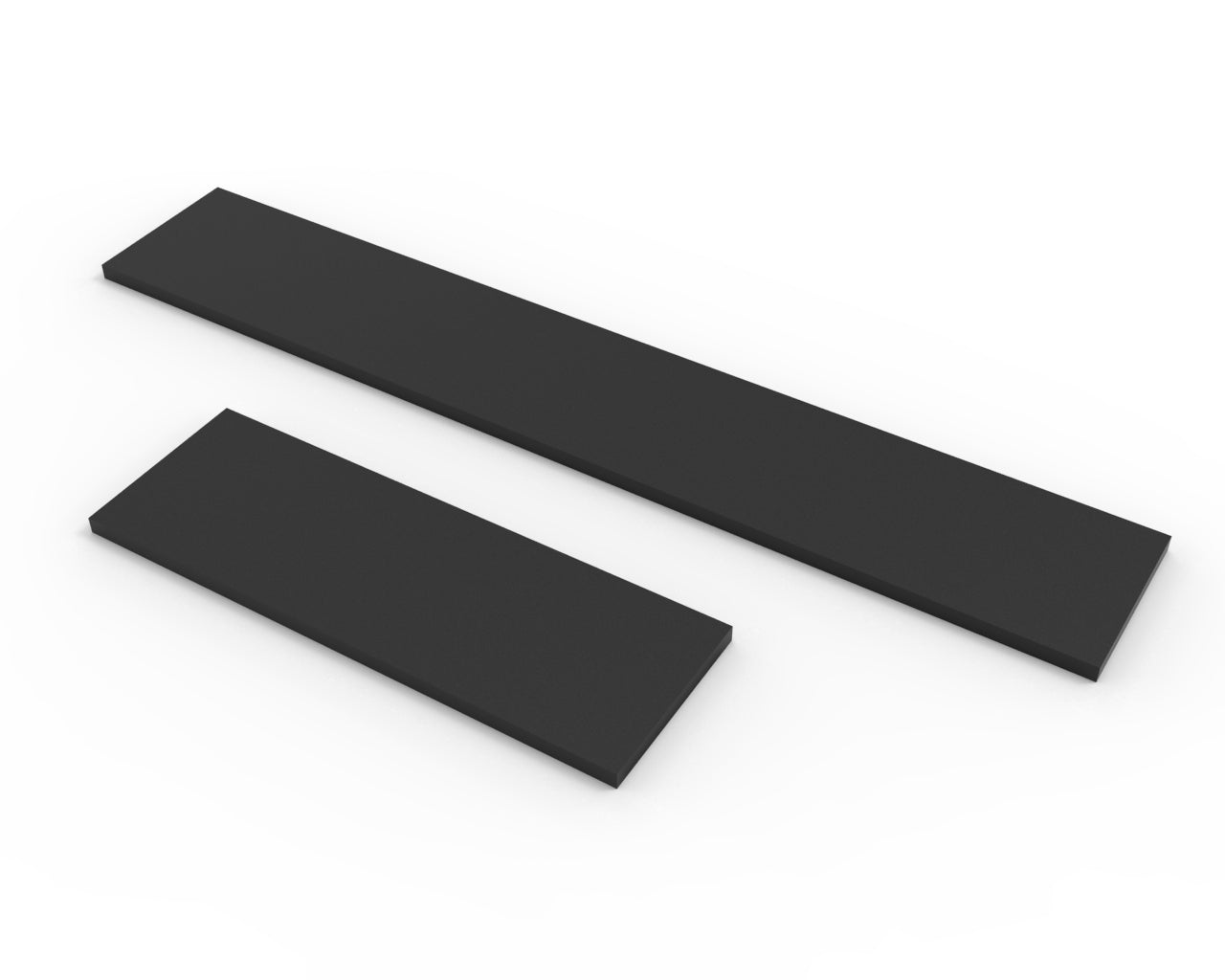 Black wooden melamine shelves. Sold Individually. Depth: 8" Thickness: 3/4" Available in 24" and 48" Lengths.